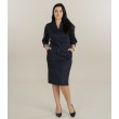 Женское платье темно-синего цвета с узором «ёлочка» и завязывающимся поясом, подчеркивающим женственную линию талии. V-образный вырез и рукава 3/4 создают классический и элегантный образ, который идеально подойдет как для офиса, так и для более официального мероприятия.