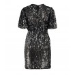Блестящее платье с короткими рукавами, поверхность которых расшита мелкими пайетками. Платье имеет круглый вырез горловины и эластичную талию, что подчеркивает женственный силуэт. Идеально подходит для торжественных случаев и вечерних мероприятий.