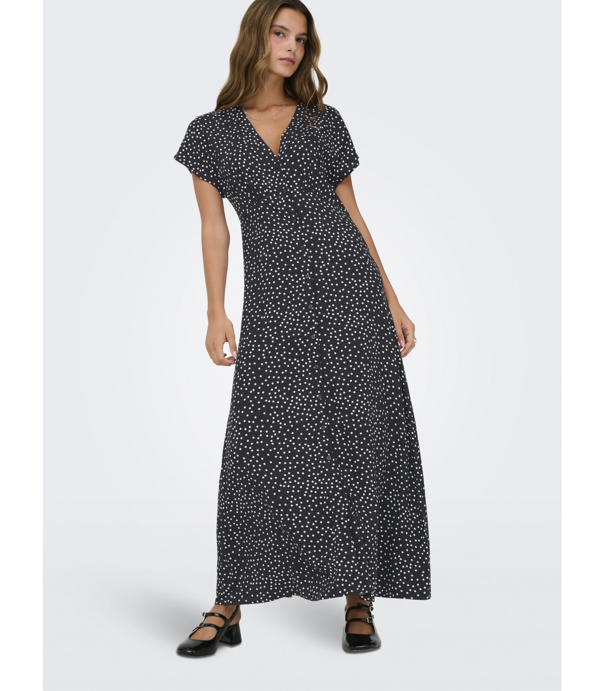 Длинное женское платье The Only с легким и струящимся кроем подходит как для повседневной носки, так и для более торжественных случаев. Яркий узор ткани и классическая застежка на пуговицы создают гармоничный и женственный образ.