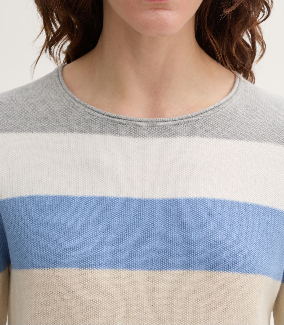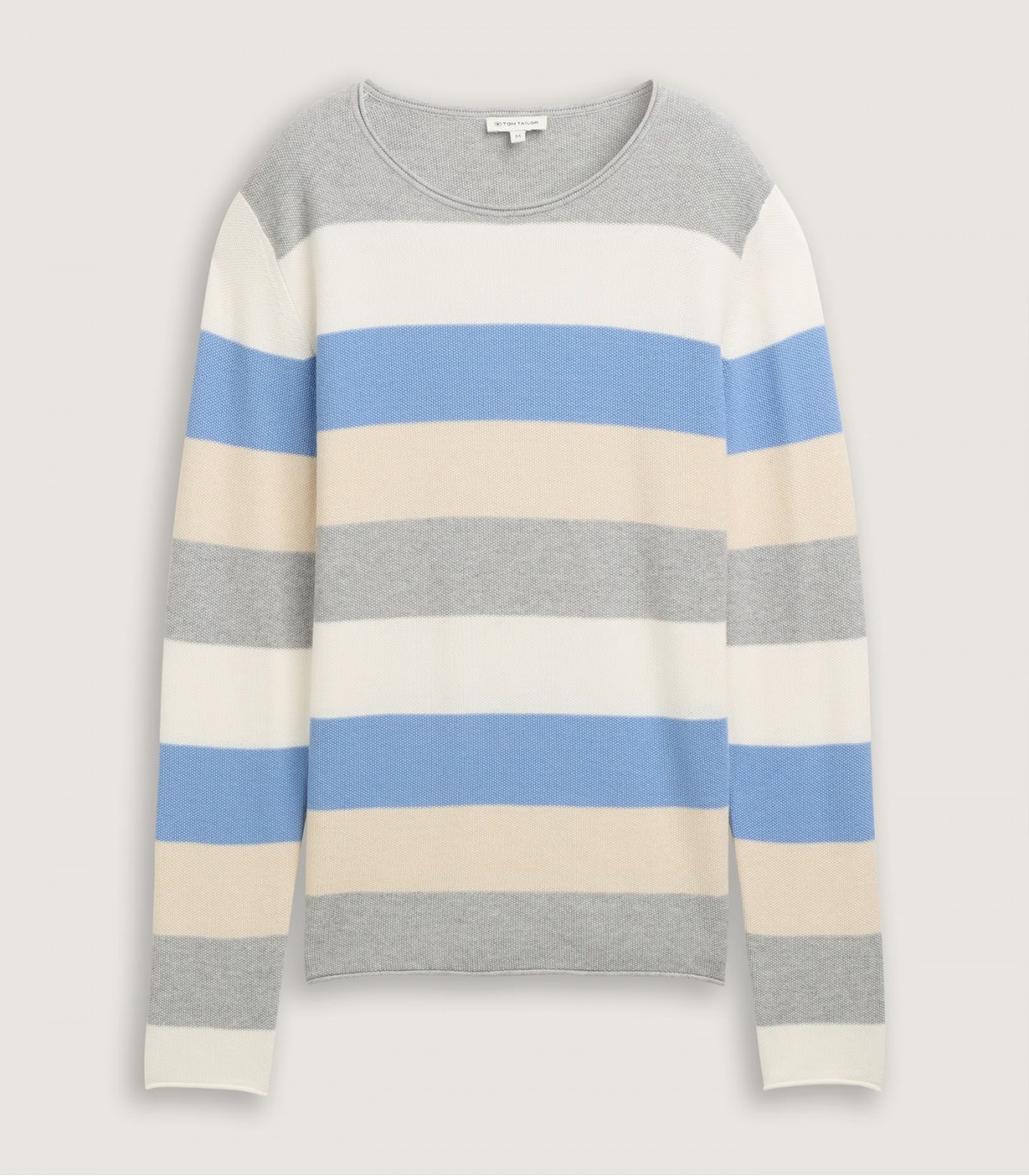 Женский джемпер от Tom Tailor сочетает в себе стиль и комфорт. Изделие имеет классический круглый вырез и длинные рукава, что делает его идеальным для повседневного ношения в прохладное время года. Полосатый узор придает модели современный и динамичный вид. Джемпер изготовлен из качественного материала, состоящего из хлопка и вискозы, что обеспечивает мягкость и приятные тактильные ощущения при носке. Такой состав делает его не только уютным, но и долговечным, отлично сохраняющим форму и цвет после стирки.