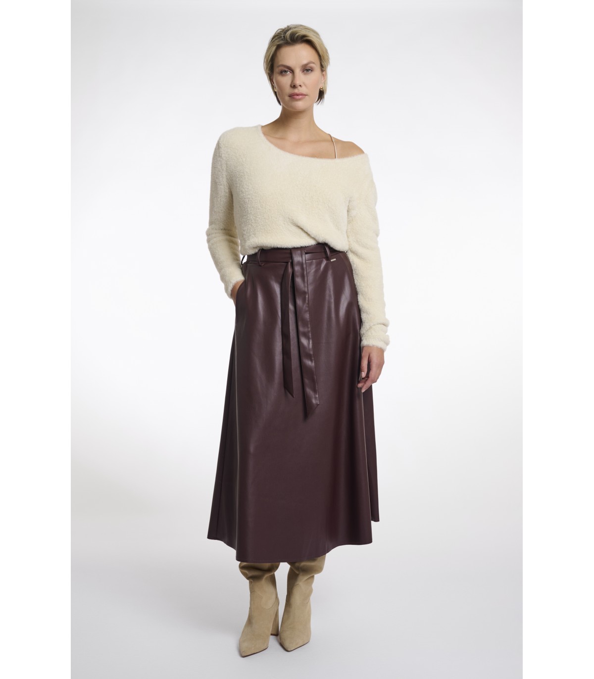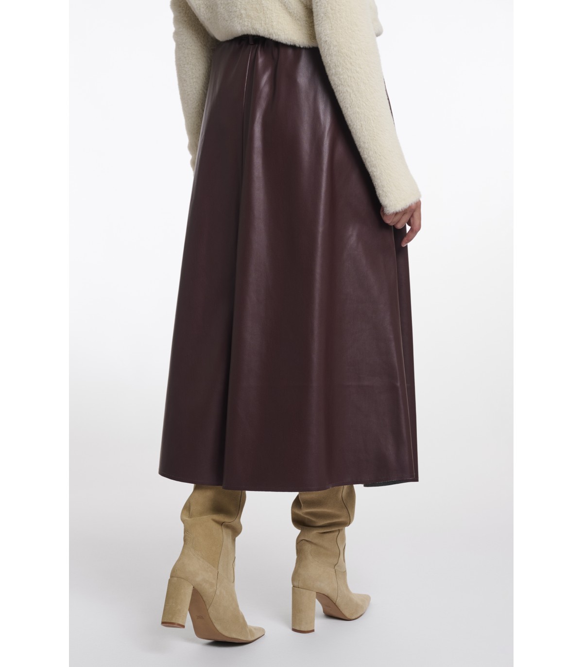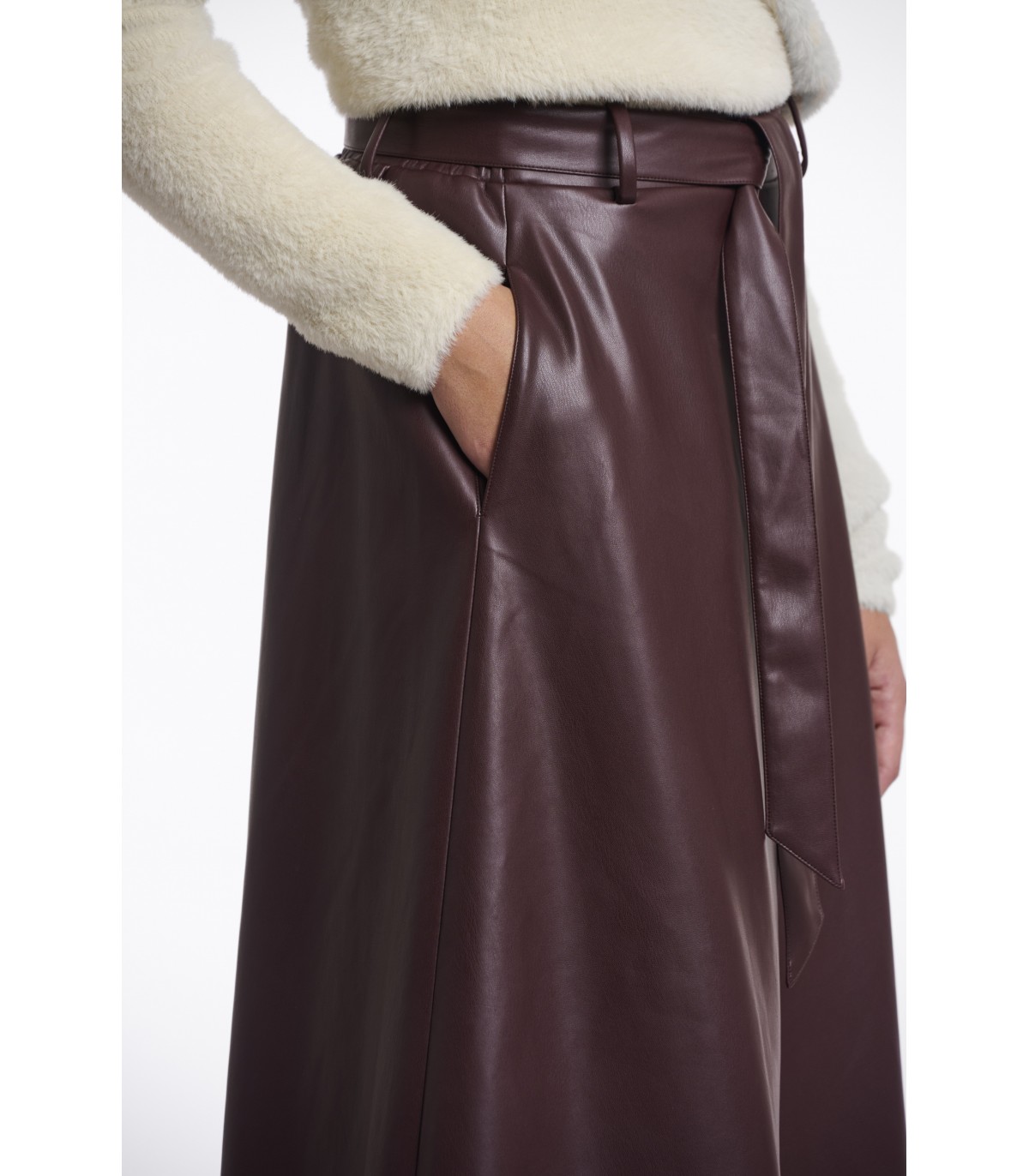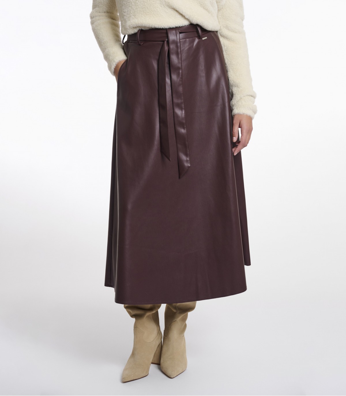 Pehme kunstnahkne midi-seelik sobib nii tööpäevaks kui õhtuseks väljaminekuks. Kõrge vöökoht rõhutab siluetti ning kaasas olev samast materjalist vöö võimaldab istuvust kohandada. Alt veidi laienev lõige annab liikumisruumi, küljetaskud muudavad seeliku praktiliseks.