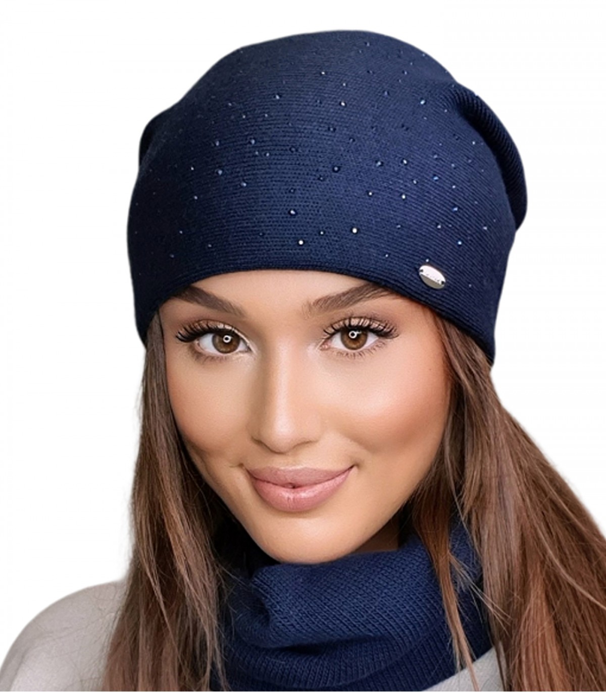 Naiste sügis-talvise müts kaunistatud väikeste metallist hernestega.