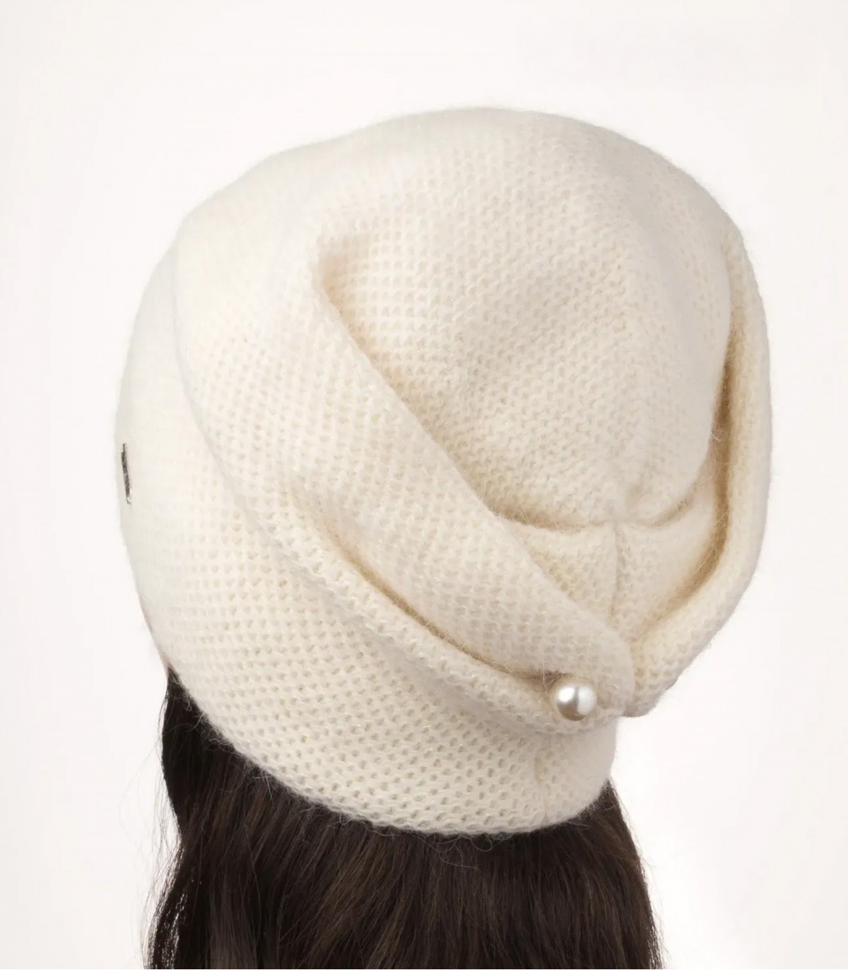 Elegantne ja pehme Odyssey naiste müts kergelt läikivast lõngast. Esiosas on väike metallist brändiplaat ning tagaküljel dekoratiivne voldikinnitus kahe pärliga. Mugav ja soe jahedamateks päevadeks.