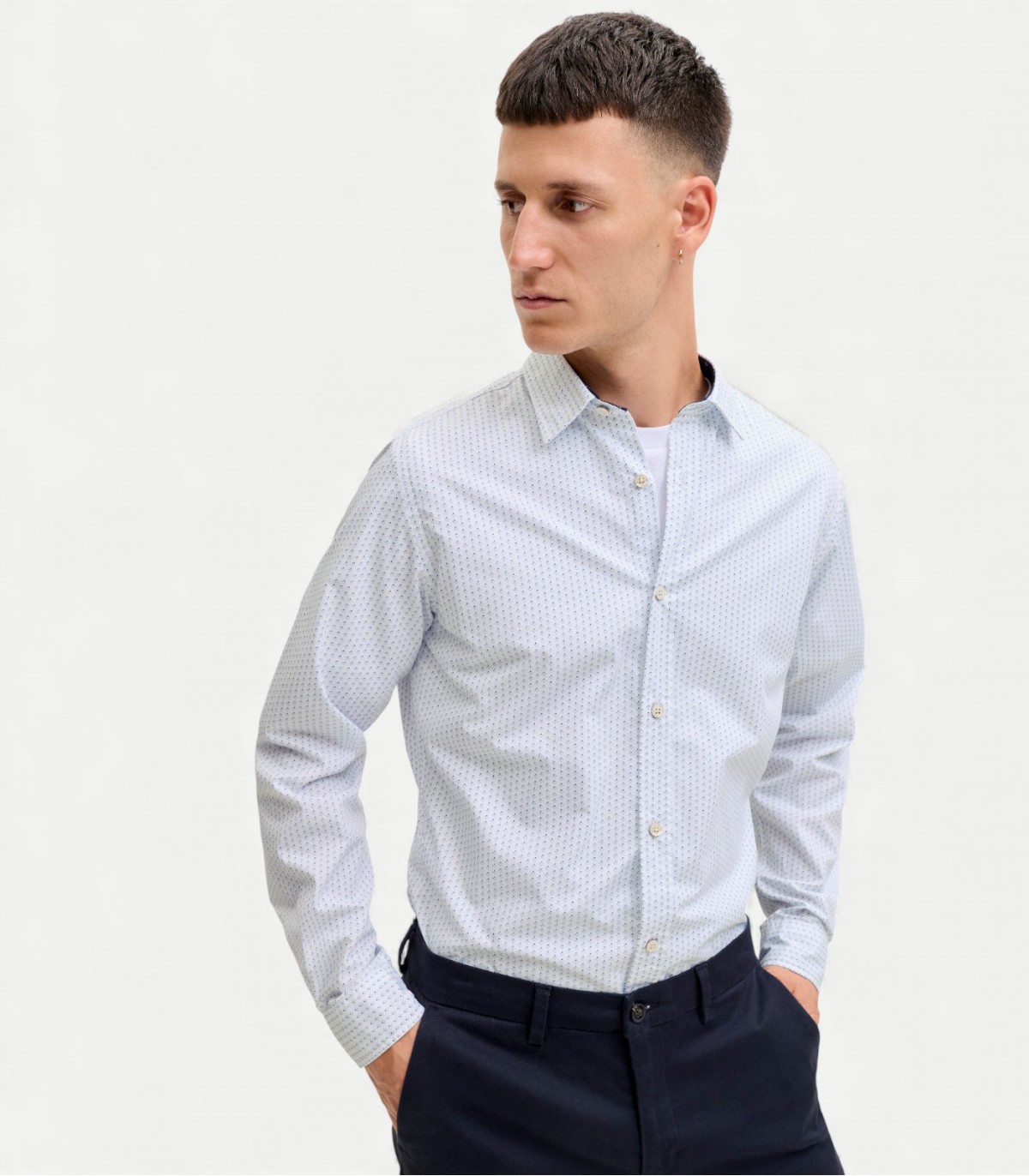 Klassikaline slim fit triiksärk väikese geomeetrilise mustriga siledast, kergesti hooldatavast puuvillakangast. Slim fit lõige on mugav ning muster isikupärane. Sobib nii igapäevaseks kandmiseks kui ka pidulikumateks sündmusteks.